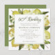 Una moderna invitación a la fiesta de cumpleaños número 60. El diseño presenta un marco acuático de limones, flores de limón y vegetación variada. Personalice con todos sus detalles importantes, incluyendo el nombre del invitado, fecha, hora, ubicación e información de RSVP. Esta plantilla es para un cumpleaños número 60, pero la edad se modifica fácilmente a cualquier edad.El reverso se coordina en verde.