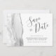 Esta elegante y moderna tarjeta de fecha guarda un borde de agujeros de color gris y blanco recortado con un falso purpurina de plata. El texto del personalizable combina guiones de escritura a mano, copperplate y cursiva en gris carbón sobre fondo blanco. El reverso presenta un diseño de ágata gris, blanco y plateado.