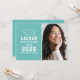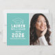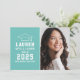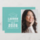 Anuncie su graduado de secundaria o universitario con estilo con esta invitación de graduación e invitación a la fiesta. La tarjeta de dos caras presenta un retrato senior del graduado con tapa de grado y diseño de tipografía blanca simple y moderno. El fondo azul del huevo de Aqua o robin se puede cambiar a un color diferente con la función "Personalizar It", luego Editar / Fondo para seleccionar otro color.