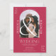 Moderno arco de boho 2 fotos negrita magenta rosa brillante e invitación a la boda blanca, agregue sus iniciales y la fecha. Un diseño fresco, sencillo y minimalista, con un ambiente bohemio desértico. Perfecto para bodas al aire libre.