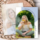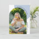 Esta moderna invitación a graduarse incluye una foto de moda en arco. El diseño se acentúa con un color azul polvoriento y un texto de estilo de escritura a mano. El reverso ofrece una foto completa con el texto de la invitación superpuesto.