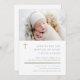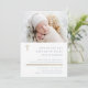 Invitaciones a un Bautismo Moderno Minimal Gold Cross con fotografía y tipografía simples. Haga clic en el botón de edición para personalizar este diseño con sus detalles.