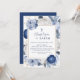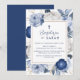 Invitación Moderno Baptismo elegante de Flor Azul y Blanca