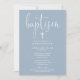 Invitación Moderno Bautizo Elegante Script Azul Polvo