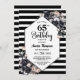 Invitación Moderno Black Floral Striped 65th Birthday Party