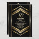 Invite a sus amigos y seres queridos con esta moderna invitación de fiesta de cumpleaños 50 en negro y oro que incluye un área de texto de personalizable que le permite incluir sin esfuerzo todos los detalles necesarios para su celebración especial de cumpleaños, incluyendo la fecha, hora, lugar e información de RSVP. Hay una variedad de tipos de papel y estilos de esquina disponibles para sus invitaciones únicas, junto con la opción de descargar si prefiere un formato digital.