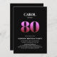 Invite a sus amigos y seres queridos a una sorprendente celebración de cumpleaños número 80 con esta elegante invitación minimalista de cumpleaños en negro y rosa.