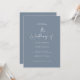 Moderna y elegante tipografía minimalista negrita invitación de boda azul polvoriento, detalle y tarjeta de código QR. Con una tipografía moderna y elegante y un diseño de rayas hacia atrás. Los colores se pueden personalizar.