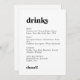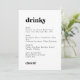 Este moderno boda negro de doble cara bebe el menú es perfecto para un boda sencillo. El diseño minimalista blanco y negro presenta un estilo retro-contemporáneo con un toque bohemio rústico único. Perfecto para cualquier temporada. Manténgalo mínimo, como está, o agrega tus propios gráficos y obras de arte.