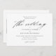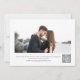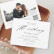 Invitación a una moderna y simple boda fotográfica en blanco y negro con un guión elegante y un texto clásico. La parte de atrás tiene una foto y el código QR para el sitio web rsvp y boda. Haga clic en el botón de edición para personalizar de este diseño.