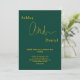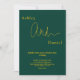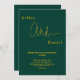 Esta elegante invitación a la boda de oro y verde es perfecta para un boda moderno. el diseño es sencillo, con una elegante caligrafía de oro sobre un fondo verde.