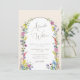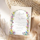 Esta moderna invitación a la boda floral de flores silvestres es perfecta para bodas boho y rústicos de campo, en verano y otoño de primavera. El arco está decorado con llamativas flores silvestres de color colorido y el diseño se complementa con el elegante guión de caligrafía. Consulte la colección para ver el resto de la suite de invitados de boda coincidente y más productos a juego.