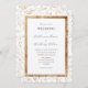Hermosa y elegante casa floral de oro durante todo el año, con un toque de vieiras sobre un elegante papel de fieltro. Más que sofisticación. Nombres de novias y novios hechos en caligrafía lujosa. También se agrega una tipografía simple y de moda para finalizar cualquier otra información de evento boda. Una sofisticada y moda invitación a la boda para cualquier temporada del año.