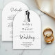 Esta elegante invitación a la boda en arco blanco y negro es perfecta para un boda moderno. El diseño es sencillo y cuenta con una elegante caligrafía negra y un ilustracion de novios sobre un fondo blanco y limpio. La tarjeta de invitación incluye los detalles del boda en la parte posterior en lugar de pagar por una tarjeta separada.