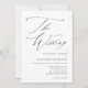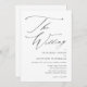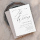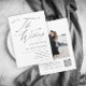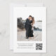 Una elegante invitación a la boda blanca y negra con escritura moderna y texto clásico. La parte de atrás tiene una foto y el código QR RSVP. Haga clic en el botón de edición para personalizar de este diseño.