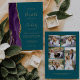 Invitación Moderno Boda Verde azulado de 5 fotos Purple Gold