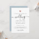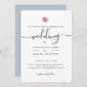 Esta invitación a la boda de moda brilla con sencillez. La moderna tipografía, la magnífica caligrafía acentuada por un corazón de bonito en oro rosa (impreso), es a la vez minimalista y elegante. Espacio para más detalles en la parte posterior (o dejar en blanco). Esta es la polvorienta versión de fondo azul claro - el color se personaliza fácilmente en la herramienta de diseño bajo "personalizar más adelante".