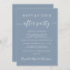 Moderno mobiliario azul polvoriento o invitación boda privada y recepción nupcial o fiesta de celebración. "Feliz eterno después del Fiesta" está escrito en una mezcla de tipografía blanca simple y un guión blanco elegante con toques. Personaliza tu invitación matrimonial y la invitación a la recepción y agrega tus nombres en un guión tipo firma. En la parte posterior, introduzca la dirección URL de su sitio web boda para crear un código QR para que los huéspedes puedan buscar todos los detalles y a RSVP en línea, y agregue sus nombres y fechas de boda y recepción.