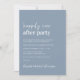 Elegancia azul polvorienta minimalista moderna o invitación boda privada e invitación a la recepción con "Feliz eterno después del Fiesta" en una mezcla de escritura blanca contemporánea y tipografía blanca de moda y audaz. Personaliza tu invitación matrimonial y la invitación a la recepción y agrega tus nombres en un guión tipo firma. En el reverso, introduzca la dirección URL de su sitio web boda para crear un código QR para que sus invitados puedan escanear RSVP en línea y obtener todos los detalles.
