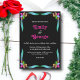 Esta elegante invitación a la boda floral es perfecta para un boda floral moderno. El diseño romántico presenta rosas de Relieve metalizado pintorescos y brillantes, con una tipografía blanca elegante sobre un fondo negro atrevido.