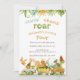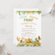 Este moderno diseño de invitación al cuarto cumpleaños de los dinosaurios con el ritmo del chomp de los chompas de los dinosaurios presenta una vibrante paleta de colores que incluye lindos bebés dinos y un arcoíris y sol coloridos, creando una atmósfera de alegría y emoción por la celebración. Este diseño evoca una sensación de aventura, transportándote a un mundo donde los dinosaurios deambulan y los árboles se mantienen altos. Tanto si eres aficionado a la prehistoria como si simplemente te gusta la estética moderna y lúdica, esta colección ofrece una mezcla perfecta de nostalgia y estilo contemporáneo para hacer de tu ducha de bebé un evento verdaderamente memorable.
