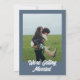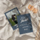 Esta invitación a la boda es perfecta para su boda si busca una invitación única y fácil de editar. Una elegante y sencilla invitación a boda azul polvoriento minimalista y elegante. Que presenta un fondo azul polvoriento. Y los nombres de las novias y del novio con letras de la mano blanca en negrita y groovy letra de texto. e información editable con foto en la parte posterior . Asequible y también es una invitación electrónica digital si quieres enviarla por mensaje de texto o correo electrónico. Toda la información es personalizable haciendo clic en el botón de personalización. Así que agárralo y hazlo tuyo para que invites comprometidos y emocionados.