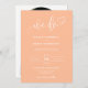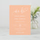 Esta invitación presenta una elegante caligrafía "hacemos" y una tipografía simple sans serif con una foto en forma de arco y código QR en un fondo de melocotón. La sencillez y el diseño limpio de esta invitación funcionan bien con todos los temas bodas y sin duda una gran adición a su boda. Simplemente personalizar los nombres y la redacción en unos pocos pasos fáciles y personaliza la tarjeta de invitación con tu foto de la pareja feliz y reemplaza el código QR con el tuyo al fondo de la invitación para darle un agradable toque personal. Nota: La elegante caligrafía de la redacción "We Do", "Dinner and Dancing to follow" y la expresión "Detalles + rsvp" no se puede editar, eliminar ni mover los dibujos gráficos ni otros elementos gráficos. Están arreglados. Si necesita cambiar el color, puede personalizar la tarjeta de invitación. Puede personalizar y personalizar la invitación para que se ajuste a sus necesidades de eventos de boda y simplemente haga clic en el personalizar de la invitación. Puede personalizar fácilmente la invitación con el texto como descarga digital y enviarla electrónicamente y compartirla con sus invitados a través de mensajes de texto, correo electrónico o medios sociales. También puede enviar o enviar la invitación a sus invitados. O se pueden obtener las dos cosas — invitación impresa y recibir la invitación en formato digital como descarga instantánea.