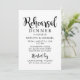 Las invitaciones a los modernos ensayos bodas para la cena presentan un moderno esquema de color blanco y negro con una tipografía de escritura de caligrafía atrevida y juguetona con detalles de desplazamiento elegantes. Personalice el texto informal pero elegante del personalizado para el evento especial.