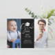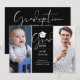 Una invitación de fiesta de graduación elegante que presenta dos fotos especiales y tipografía elegante en un fondo negro. Diseñado por Thisisnotme©