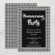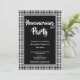 Una moderna invitación a una fiesta de bienvenida en blanco y negro con un atrevido borde a cuadros de diamantes en blanco y negro.