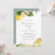Esta moderna invitación a una fiesta de bienvenida en una casa de limón-jardín es perfecta para un evento de primavera o verano. El diseño rústico mediterráneo presenta limones acuáticos brillantes y hermosos con flores blancas bohemias y elegantes hojas verdes.
