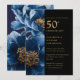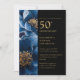 Invitación Moderno Floral Azul Negro y Oro 50 Aniversario