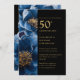 Invitación Moderno Floral Azul Negro y Oro 50 Aniversario