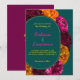 Invitación de boda floral moderna en amarillo, rosa y verde. Haz una declaración audaz y vibrante con esta invitación de boda floral moderna en amarillo, rosa intenso y verde, sobre un llamativo fondo verde turquesa. Con una mezcla animada de flores de inspiración tropical en tonos vívidos, este diseño combina la elegancia contemporánea con un encanto juguetón. El rico fondo turquesa realza las flores brillantes, creando un look fresco y elegante perfecto para bodas de primavera y verano. Con tipografía elegante y un diseño moderno, esta invitación es ideal para parejas que buscan agregar un toque divertido, colorido y sofisticado a su celebración de boda.