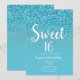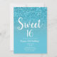 Invitación Moderno Glam Brillo Azul Acuático Dulces 16
