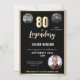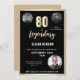 Invitación a los 80 años de la Moderna Metálica de Oro. Celebra un hito en estilo con nuestra invitación de cumpleaños Elegante Black & Gold 80th. Con un sofisticado fondo negro adornado con lujosos Relieves metalizados de imitación dorada, este diseño le da un toque de clase a cualquier celebración. Personalizada con 3 fotos, esta invitación es perfecta para hacer que el huésped de honor se sienta especial. ¡Hacer que el 80 sea inolvidable con este diseño atemporal y de moda!