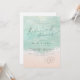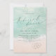 Hermosa acuarela turquesa y abstracta que resalta la ola del océano y los corazones en el fondo de la playa de arena, coronados por un guión elegante y un elegante estilo serif, moderno y sencillo. Excelentes invitaciones para cenas en bodas náuticas en la playa, bodas con destino tropical, boda con temática oceánica costera en verano.