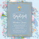 Moderno y elegante guión de la cruz de oro Dusty Blue Boy Baptism Invitación con (falso) marco de oro.