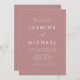 Invitaciones de boda sencillas y elegantes con un guión blanco escrito a mano mezclado con letras modernas en un polvoriento fondo rosa. Personalice la invitación minimalista de boda con su nombre y detalles de boda. Las polvorientas invitaciones a la boda rosa son la elección perfecta para los bodas modernos.