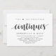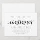 Tarjeta de invitación temática de guion con fuente negra moderna limpia rústica (con título de tarjeta: la celebración continúa). Es perfecto para su recepción de boda de fuga / fiesta de celebración posterior a la boda. Agregue sus detalles en fuente / letra negra a juego.