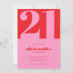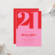 Moderna invitación minimalista de 21 años con un diseño sencillo con elegante tipografía de moda en color rosa y rojo.