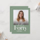 Moderna tipografía mínima simple foto sage invitación de cumpleaños 40 en verde y blanco. Parte de una colección contemporánea.
