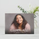 Esta invitación completa a la graduación horizontal de la foto muestra un elegante superpuesto de tipografía. Personalice el reverso con una segunda foto vertical y los detalles de la invitación a la fiesta de graduación.