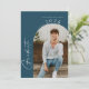 El futuro se ve brillante con estas invitaciones modernas y de moda a la fiesta de graduación en color azul marino que celebra la clase 2023 Añada su información personalizada y 2 fotos de elección en la parte delantera y trasera de la tarjeta. Ideal para celebraciones de secundaria, universitarias y/o universitarias.