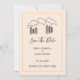 Este elegante boda clásico de estilo minimalista ahorra la fecha destacando el arte de línea de la naturaleza incluyendo colinas, montañas y árboles, nombres de pareja, fecha, ubicación de la ciudad e información del sitio web personalizado sobre un personalizado clásico elegante y elegante fondo marrón claro decorado con un marco marrón es una buena elección para un amante de la naturaleza, amante del senderismo, eventos bodas de exploradores externos. Personalizado hacerlo personal.