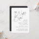 Invite a los huéspedes a celebrar a la pareja feliz con estas modernas y mínimas invitaciones a la ducha en blanco y negro clásico. El diseño sencillo incluye "la noche anterior" en un guión manuscrito casual, con los detalles de tu evento debajo de las letras negras de ceniza suave.