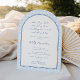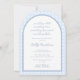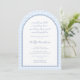 Para la moderna novia clásica que quiere algo elegante pero con un guiño a las tendencias, esta invitación sería perfecta. El diseño de una ducha de matrimonio "Algo Azul" presenta una de las estampas más recientes de la temporada, un patrón de tejido de mimbre abierto y en forma de arco. En la parte trasera hay un monograma de parejas sencillas y modernas.