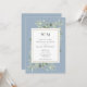 Con delicadas hojas de color agua verde sobre un polvoriento fondo azul, esta invitación a la boda botánica de moda puede ser personalizada con sus iniciales de monograma e información especial del día de la boda. Diseñado por Thisisnotme©