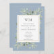 Invitación Moderno Monograma Dusty Blue Greenery Boda