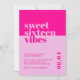 ¡Celebra el estilo de los 16 años de tu hija o ser querido con nuestra Invitación de cumpleaños rosado 'Dulce y Dieciséis'! Esta invitación moderna y audaz es la manera perfecta de marcar el tono de un fiesta dulce y memorable de dieciséis. Diseñada con colores rosados vibrantes y fuentes atractivas y contemporáneas, esta invitación exuda energía y emoción juvenil, lo que lo convierte en una elección ideal para cualquier celebración dulce de dieciséis.